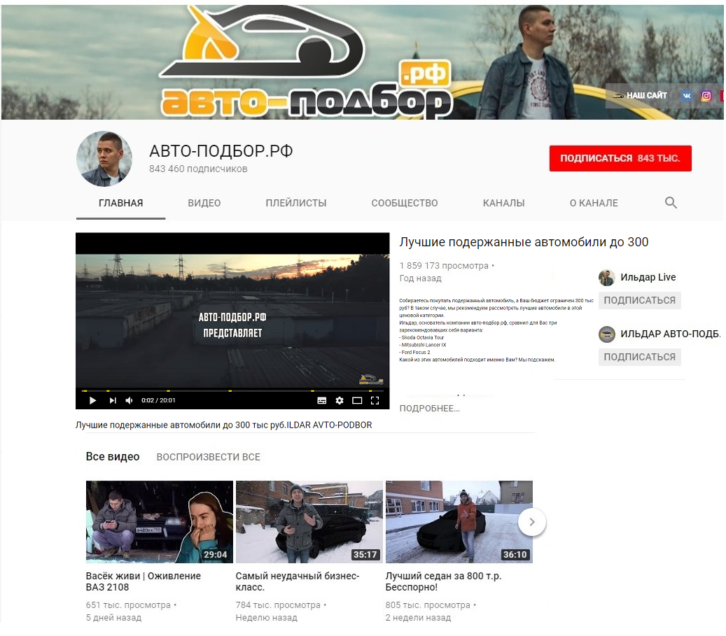 Канал Авто-подбор с 1,4 млн. подписчиками