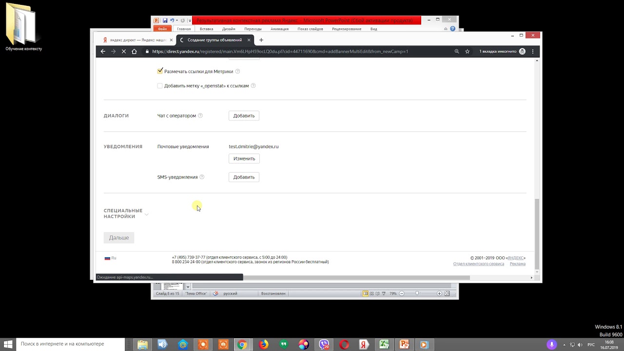 1.2. Создать тестовую кампанию Яндекс Директ.